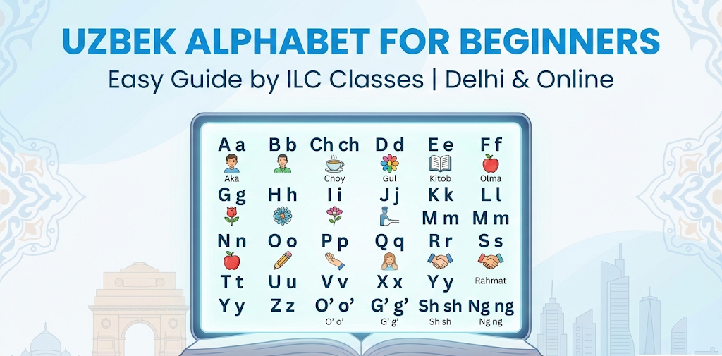 *This Uzbek alphabet guide is designed for beginners and learners exploring foreign language courses at ILC — your friendly language school in Delhi.
